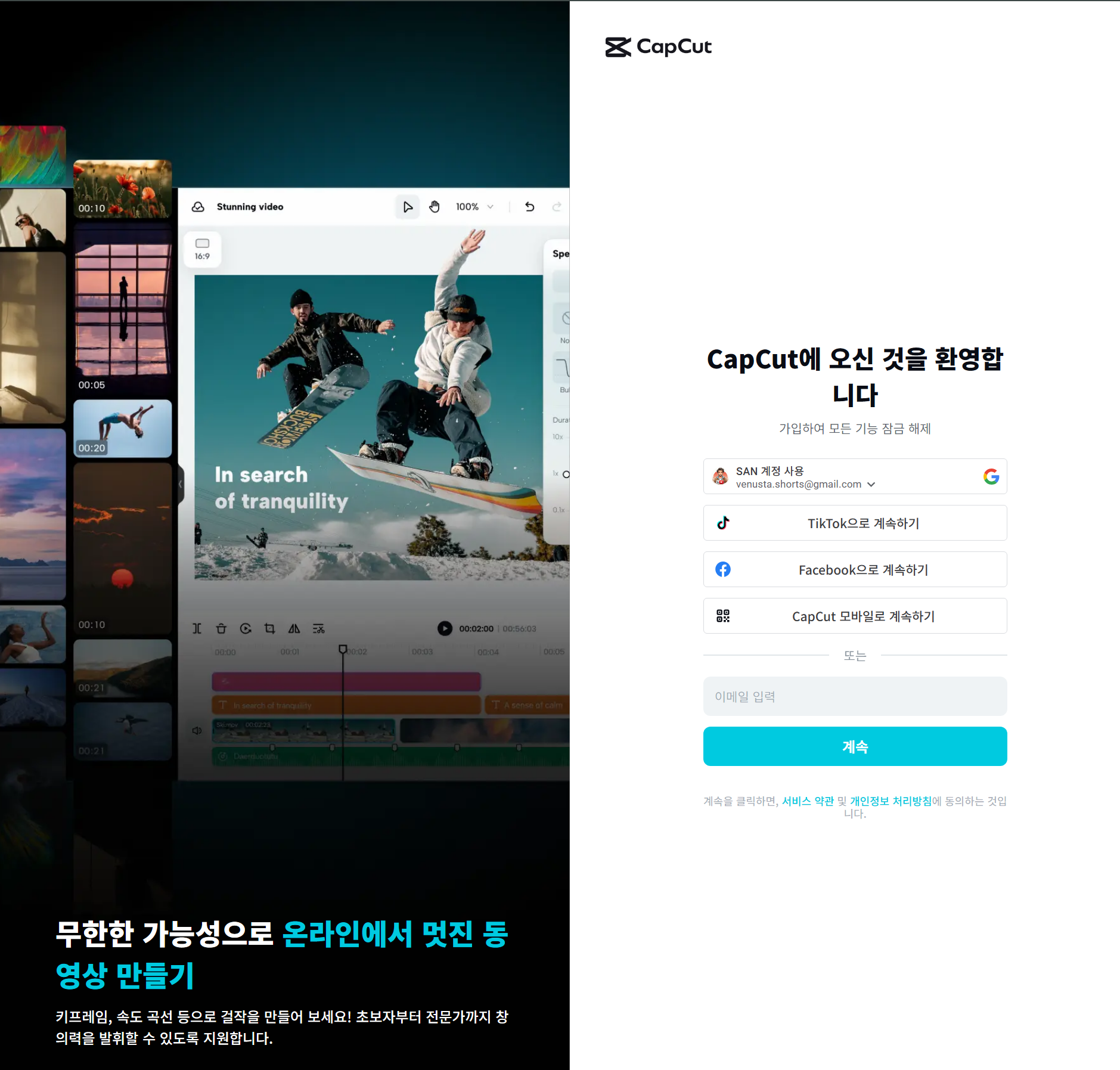 TikTok 제작사 Bytedance가 만든 무료 영상 편집 툴.