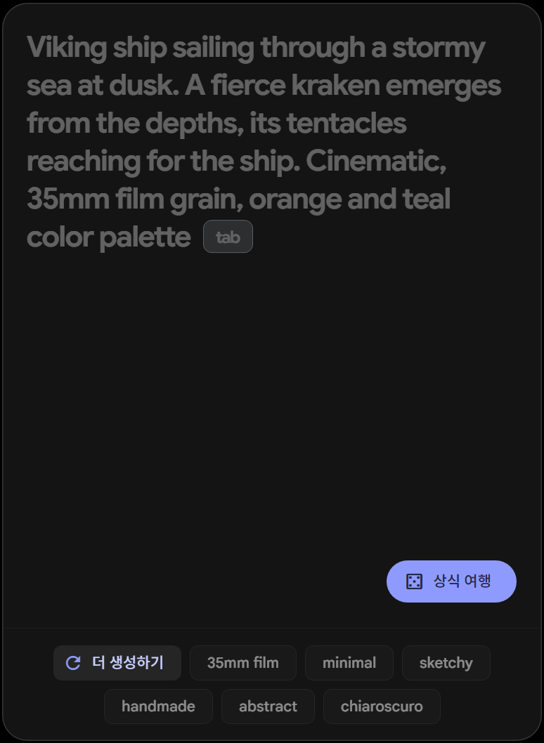 ImageFX는 다양한 스타일의 이미지를 생성할 수 있습니다. 아래는 자주 활용되는 스타일들과 그에 맞는 프롬프트 예시입니다. 스타일은 보통 프롬프트의 뒷부분에 태그처럼 추가합니다.